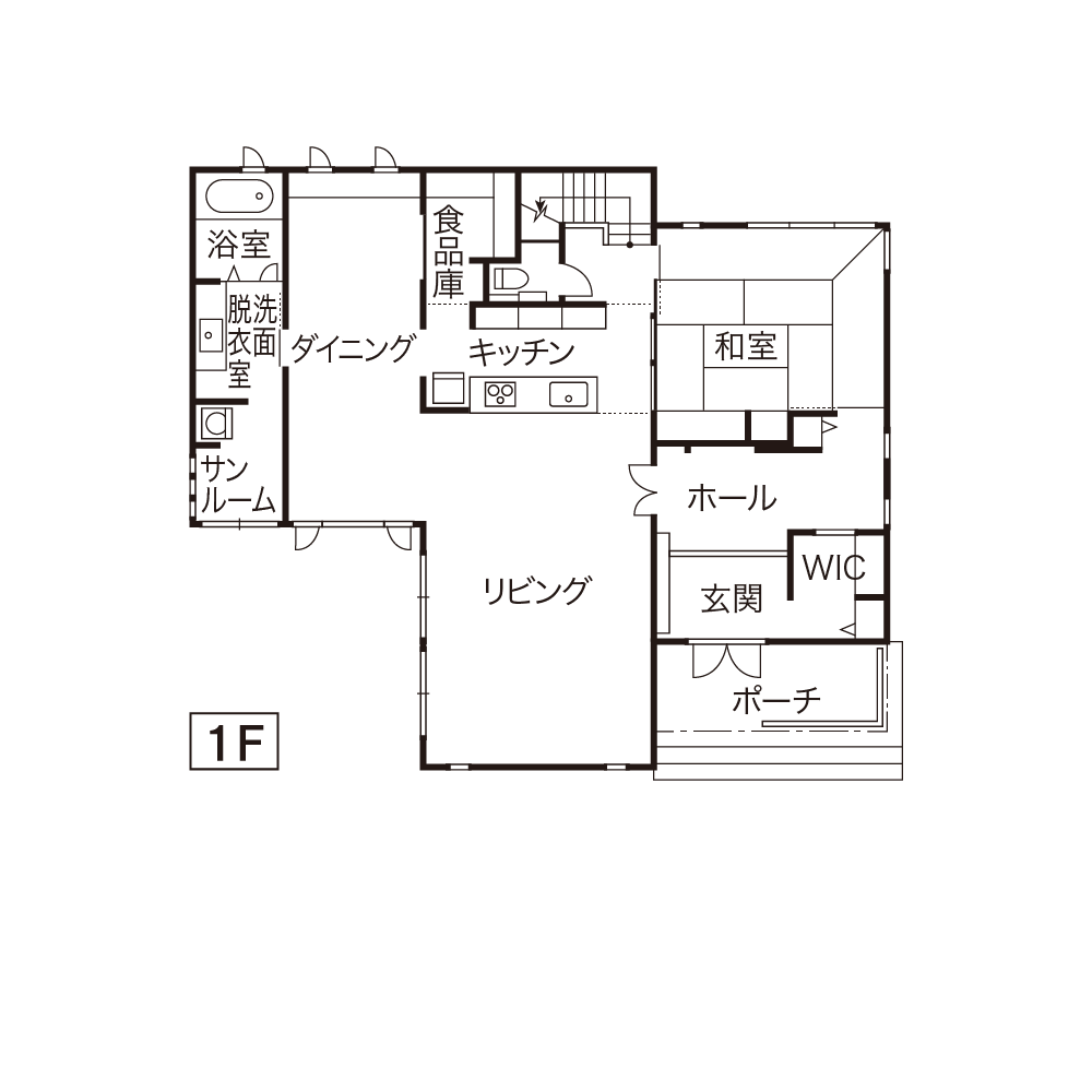 - LDK…室内と庭をリンクさせ、居ながらにして空と緑に癒され、自然とのつながりが暮らしをさらに豊かに。